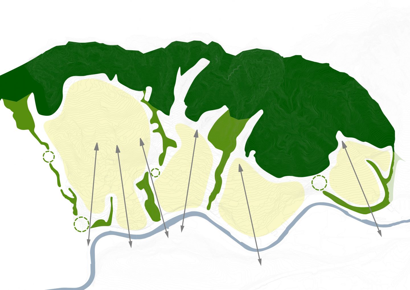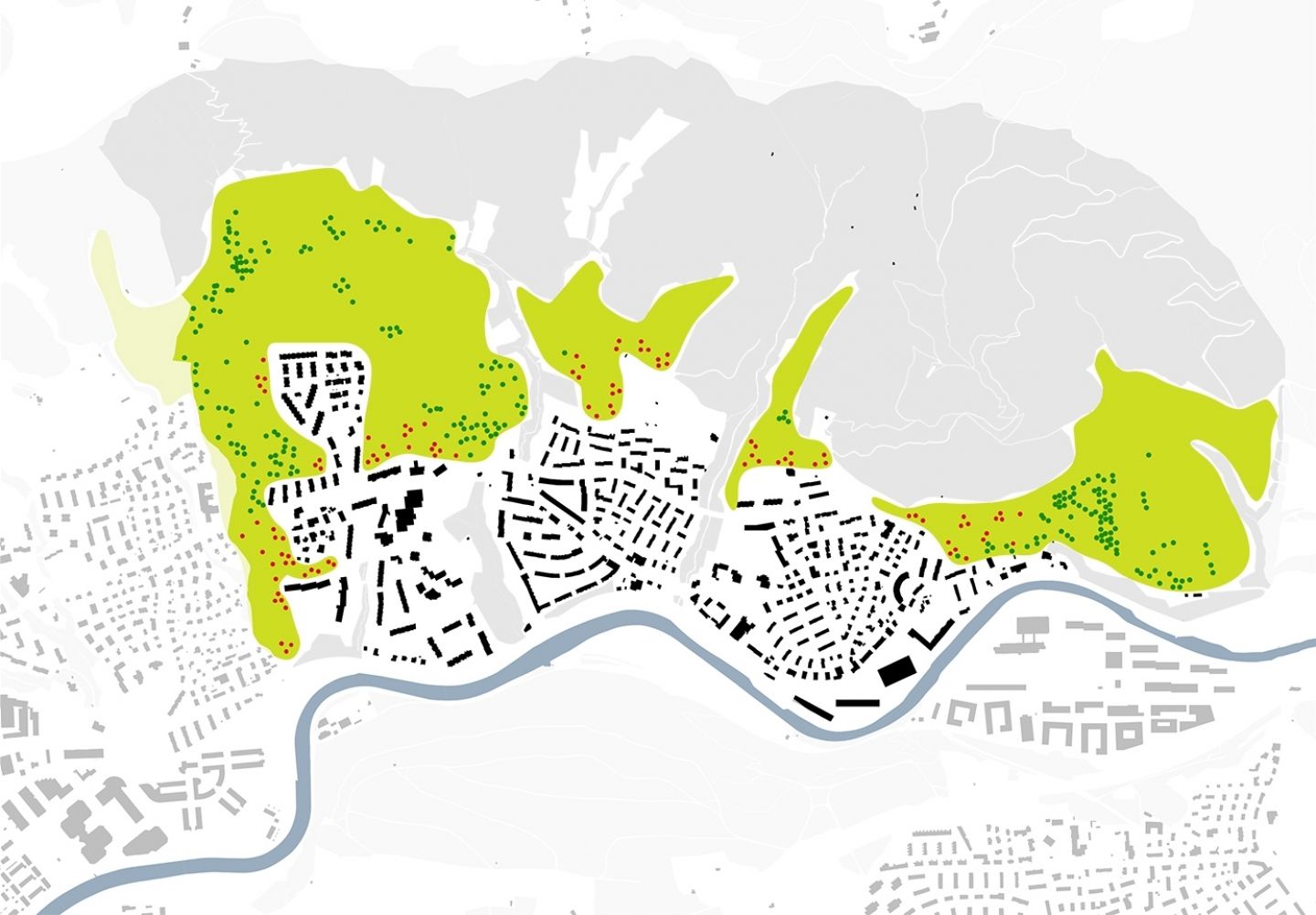 Anhand dem Strategieplan werden die charakteristischen Siedlungs- und Landschafträume von Leimbach kategorisiert. Mit dem Potentialplan werden die Handlungsorte mit den anzustrebenden Maßnahmen identifiziert. Im Westen befindet sich die Naturlandschaft des Uetlibergs mit ausgedehnten, bewaldeten Höhenzügen und prägnanter Topographie. Bachtobel durchqueren das Siedlungsgebiet Leimbachs und führen hinunter bis zur Sihl. Diese unmittelbare Nähe zur Naturlandschaft im Stadtgebiet ist eine große Bereicherung und gilt es daher zu erhalten. Die anschließende Kulturlandschaft mit Weiden und Streuobstwiesen an den sanft geneigten Hängen ist prägend für das Ortsbild. Sie bildet die Grenze des Siedlungsgebiets und ist wichtiger Naherholungsraum. Im Siedlungsgebiet Leimbachs ist die offene Bebauungsstruktur mit der Gartenlandschaft vorherrschend. Kennzeichnend dafür sind die zahlreichen privaten und gemeinschaftlichen Freiräume, sowie vielseitig genutzte Strassenräume mit Treffpunkten, Aufenthalts- und Spielplätzen. Ziel ist es, diesen wertvollen Siedlungstyp zu erhalten.